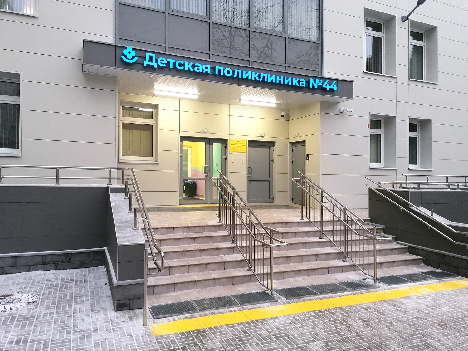 Детская городская поликлиника №44 на ул. Мытнинская благодаря нашим дизайнерам и производству получила новую современную навигацию и фасадные вывески, которые по достоинству оценили не только сотрудники и пациенты, но и лично губернатор Санкт-Петербурга.