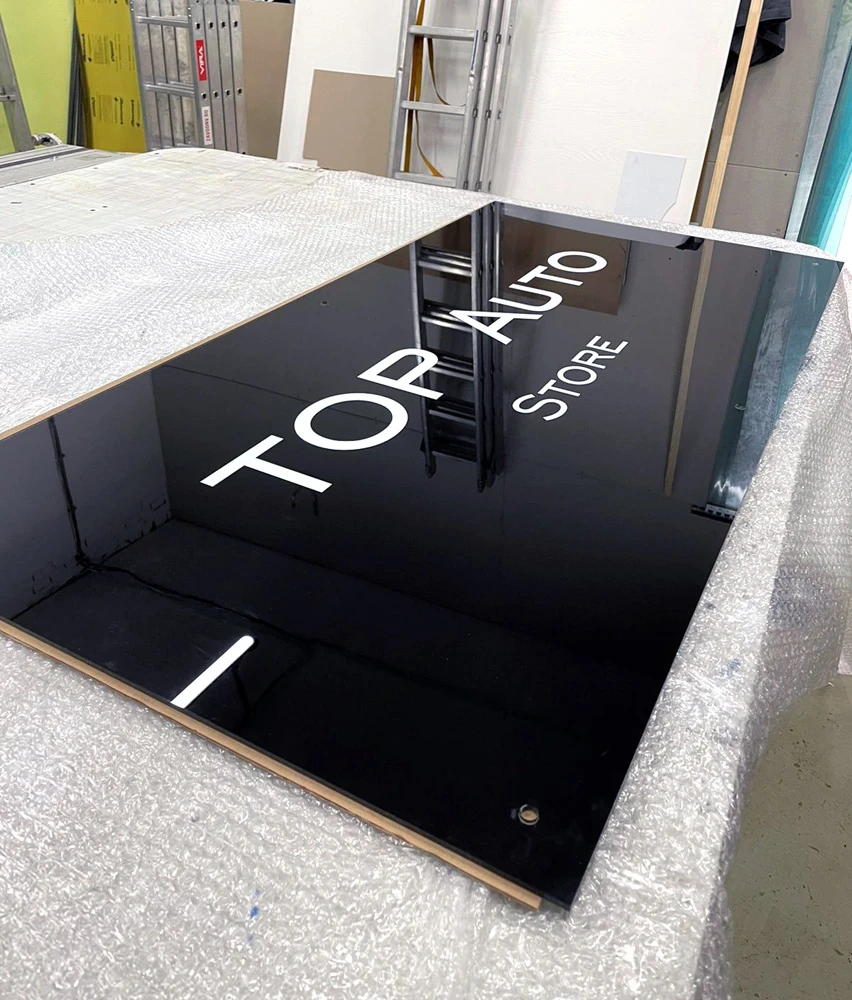 На оргстекле можно печатать цветные изображения (прямая УФ-печать), печатать белым цветом на прозрачном фоне или выполнять аппликацию из цветных самоклеящихся пленок. Также с помощью пленок можно придать оргстеклу, например, матирующий эффект.