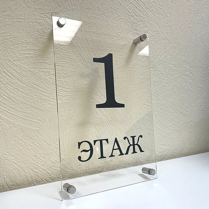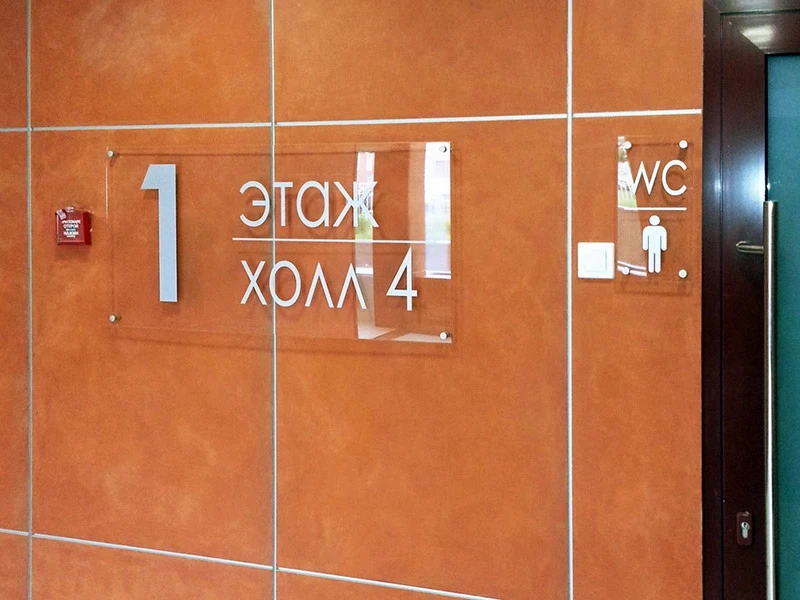 Таблички из оргстекла выглядят презентабельно, а в сочетании с хорошим макетом – еще и отлично передают нужную информацию. Чаще всего такие таблички устанавливают в бизнес-центрах и офисах.