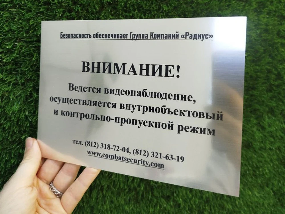 Таблички из пластика ПВХ — экономичный и практичный вариант табличек. ПВХ хорошо выдерживает мороз, дождь и жару, сохраняя при этом яркость цветов в течение нескольких лет даже при использовании на улице.