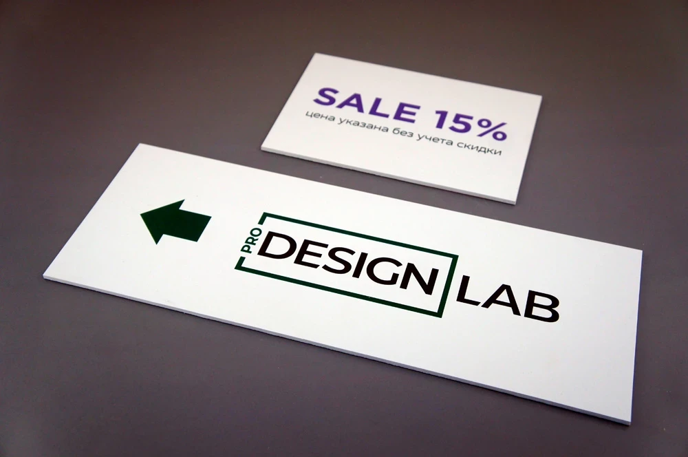 Листовой ПВХ (поливинилхлорид) — жёсткий и лёгкий пластик толщиной от 1 до 10 мм. Не боится влаги, устойчив к ультрафиолету и перепадам температур. Легко режется и фрезеруется, идеально подходит для информационных и рекламных табличек.