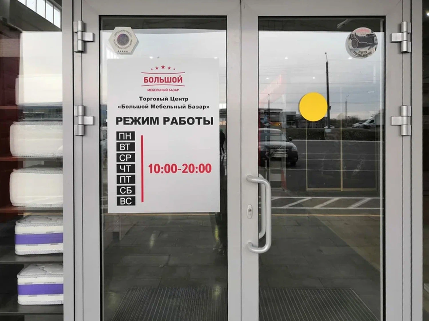 На наклейке с режимом работы необходимо указать: часы работы организации, перерывы, выходные дни, полное наименование организации или ИП.