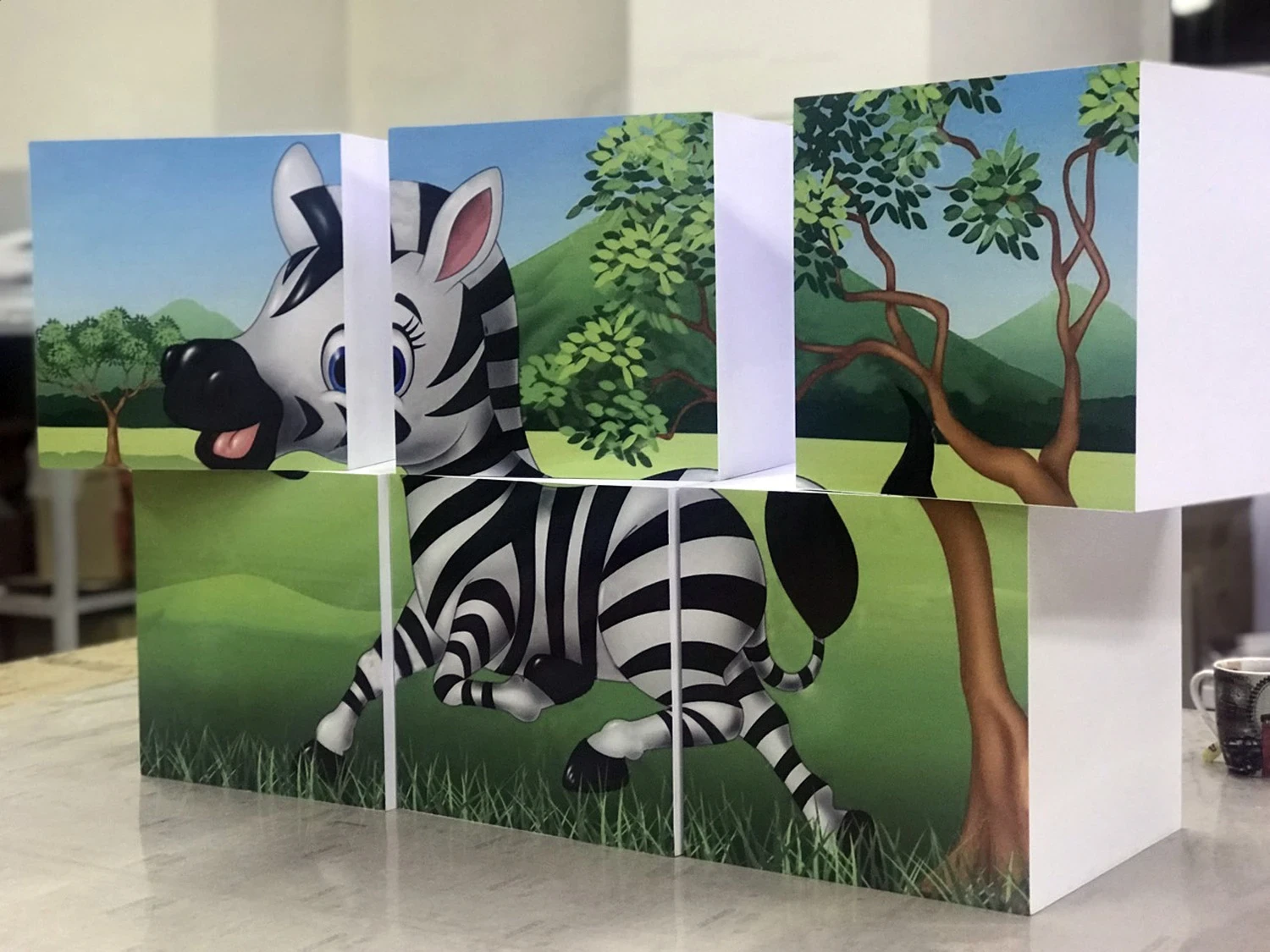 Собранный куб оклеивается самоклеящейся пленкой с напечатанным изображением или информацией.