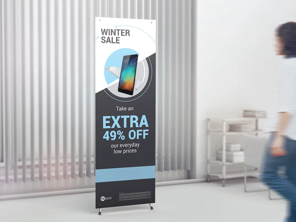 X-стенд (Паук) — компактный рекламный стенд для выставок, торговых залов, офисов и промо-мероприятий. Х-образный каркас из алюминия удерживает баннерное полотно в натянутом виде.